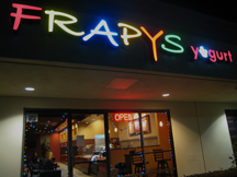 I’ve written before about Frapys and why they’re my favorite yogurt shop, which includes their use of super-premium quality yogurt (Click Here).  Went there last night with a friend and found a few new flavors, most of which were out of this world:  Lowfat Caramel Green Apple (OMG!), Nonfat Butter Brickle and Coconut Cream Pie, both excellent.  Not a new flavor but still may be my favorite, and the most popular, the shop owner tells me,  is the Italian Kiss Gelato, with the richest tasting chocolate I’ve ever experienced in a yogurt.  Another favorite is the Lowfat Dulce de Lecha, a  caramel-type flavor.  I’m not a fan of tart flavors, but if you are, there’s quite a few, and two choices of No Sugar Added – strawberry/banana and chocolate.  They offer a lot of flavors, more than Yogurtland, and are generous with giving you sample cups to try out all the flavors you’re curious about.  $.35/ounce