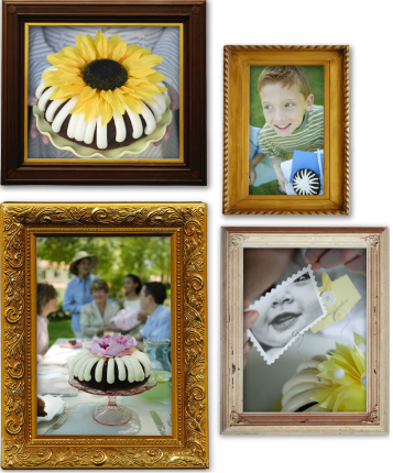 The minute you walk in the door of Nothing Bundt Cakes, all your senses come alive with the scent of fresh cake. Your eyes don’t know where to go first–everything is so colorful, pretty, cute, happy.  Bundt cakes in a variety of sizes, daisies and ribbons in different colors and patterns to choose from to decorate your cake.